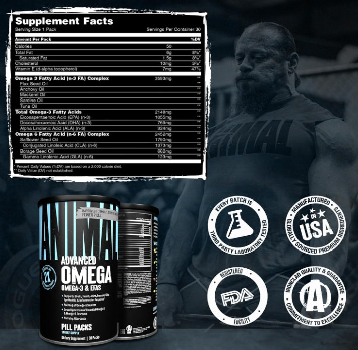 Animal Advanced Omega는 고강도 운동을 하는 트레이너와 운동선수를 위해 설계된 고함량 필수지방산(EFA) 포뮬라입니다.