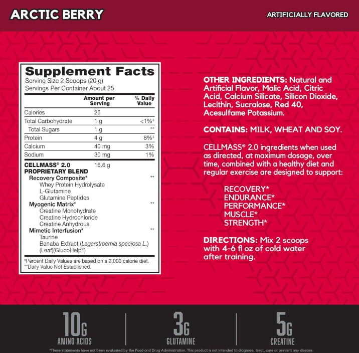 CellMass 2.0은 획기적 크레아틴 기술의 CEM3(Creatine Ethyl Ester Malate)를 함유하고 있어 놀라운 속도로 근육에 흡수될 뿐 아니라, 근육을 강력하게 하고, 빠르게 회복시켜주는 글루타민을 함유하고 있습니다.