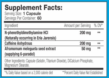 Eria Jarensis에리아 자렌시스(N-phenethyldimethylamine HCI)는 매우 강력한 자극제 및 지방 연소 성분으로 체내 도파민과 노르아드레날린을 증가시켜 기분 상승 효과를 제공합니다.