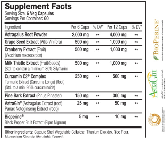| Astragalus Root (황기) | 4,000 mg | 🌿 | 신장 기능 개선, eGFR 향상, 단백뇨 개선, 면역력 강화, 항염 효과 |