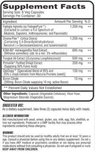 - 임상적으로 연구된 테스토스테론 촉진 성분을 제공합니다.