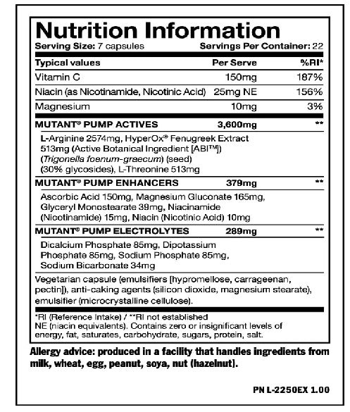MUTANT PUMP는 L-Arginine과 Fenugreek Extract(페누그릭 추출물)과 같은