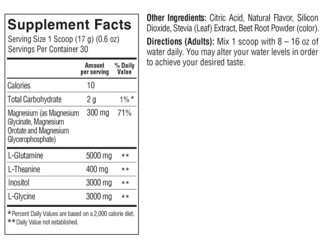 **이노시톨(Inositol)**과 **글리신(Glycine)**이 신경전달물질 활동과 조직 회복을 지원하며,